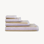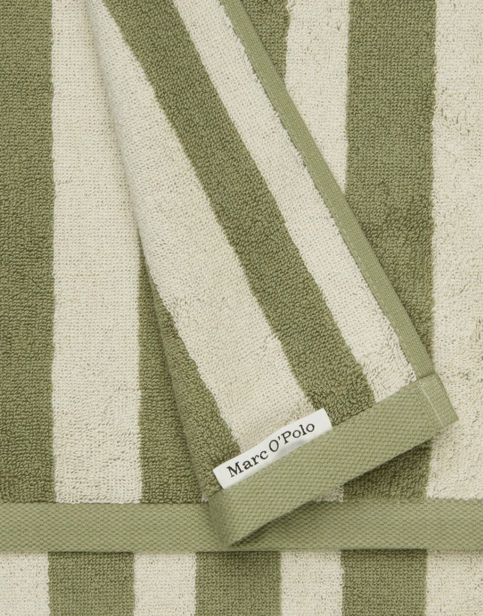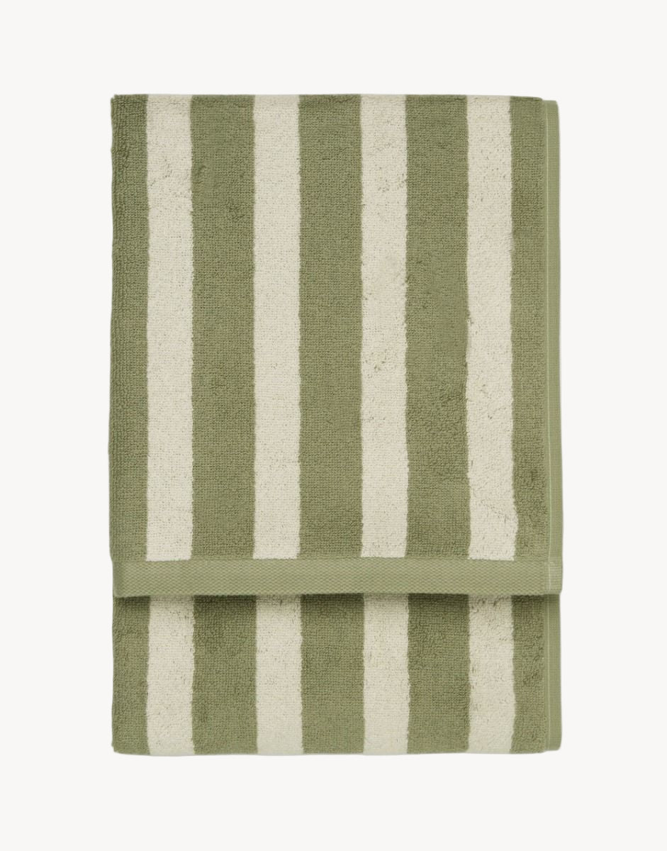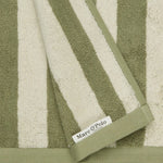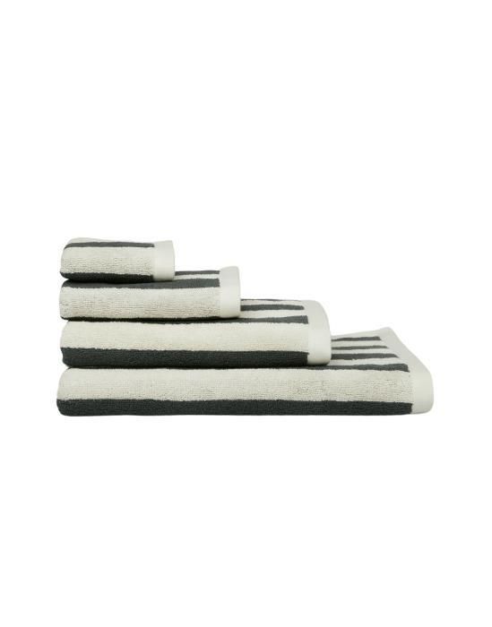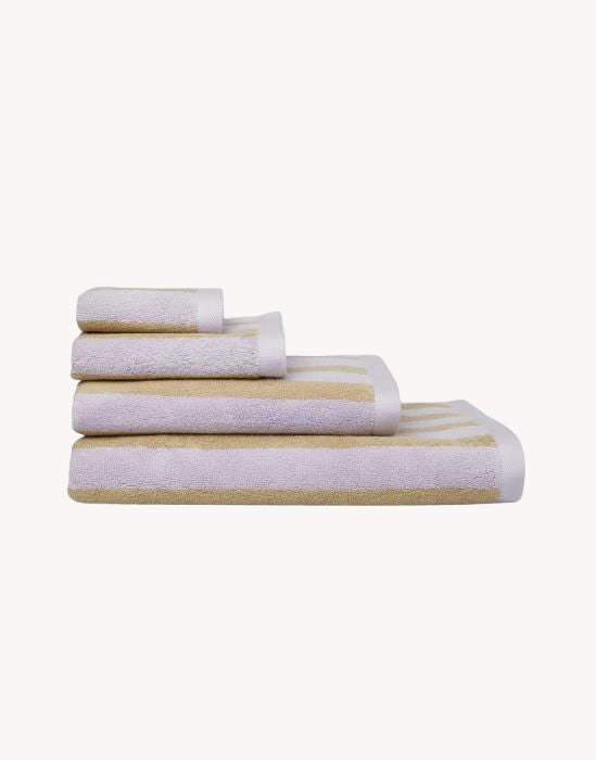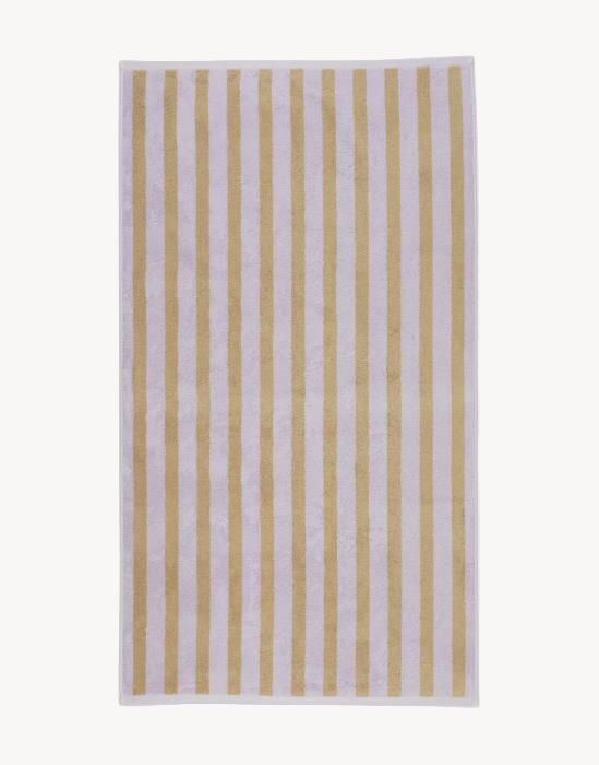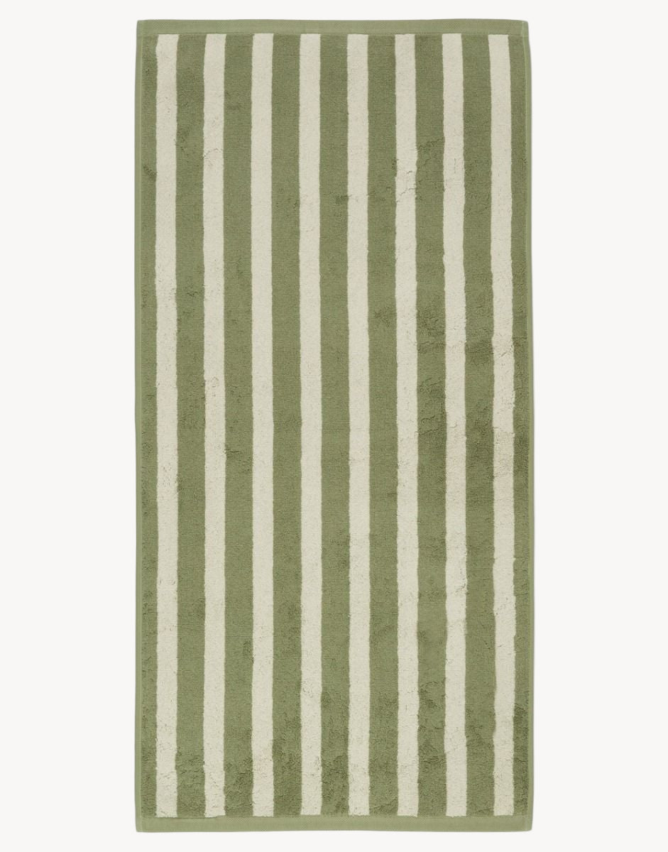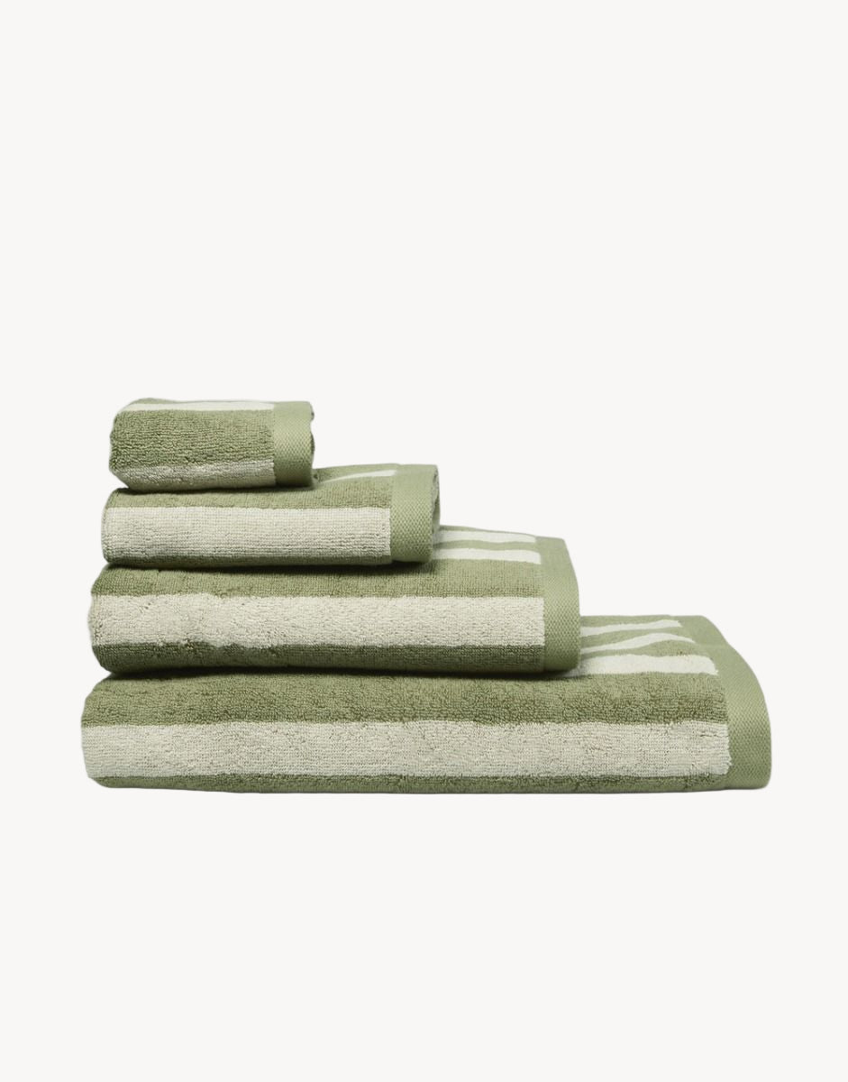 Heritage Stripe. A premium towel in yarn-dyed terry, crafted from GOTS-certified organic cotton. Defined by bold jacquard stripes in fresh, contemporary colors.